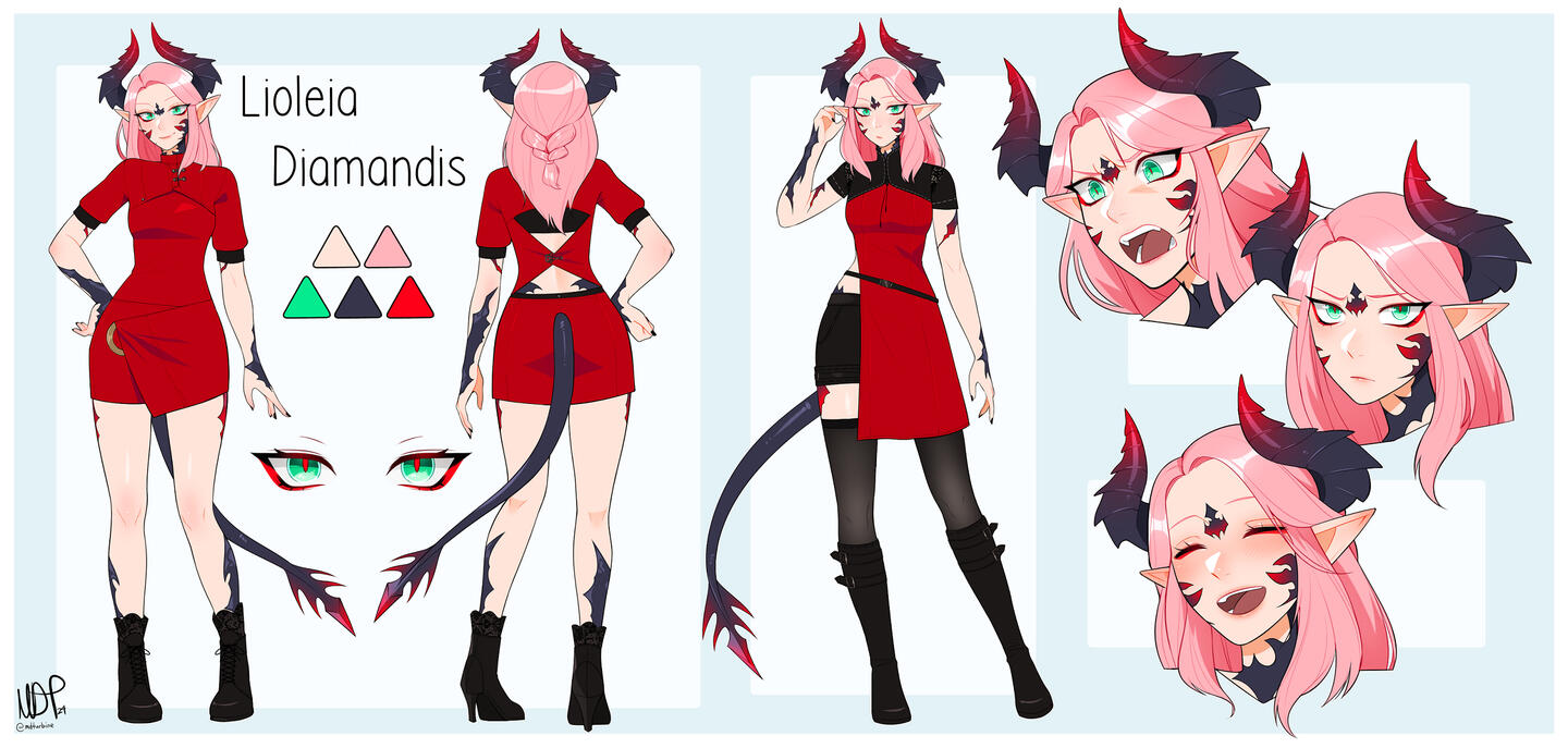 getting off on bad behavior.Lioleia Diamandis is the kind of girl you'd die for. She's larger than life - being both flamboyant and theatrical, perhaps even a bit over-dramatic for the sake of amusement and flair. Her tone is melodic and gentle, unintentionally luring people into a false understanding of her natureIn truth Lioleia is an "eccentric" (megalomaniac) that possesses a caustic wit. Her tongue is sharp and often leads her into trouble, lacking the proper decency to hold back her thoughts or opinions. Her ego is massive, bordering on the line of narcissism. Her severe personality and identity issues tend to rear their ugly head once she's already sunk her claws into the unfortunate object of her affection, although she's not entirely awful.Despite her unsavory tendencies Lioleia is fully capable of behaving in a more gentle and motherly manner - especially with children or those she finds herself infatuated with. Her undying devotion to whom she deems worthy is a stark contrast to her typical demeanor - that of a narcissist with a thirst for power and delusions of grandeur. In the end, Lioleia is obsessive and easily smitten; even easier to manipulate as a result. She seldom questions the suggestions and commands of her partner, blindly obeying their whims. Love is an emotion to transcend rationality and logic after all!
