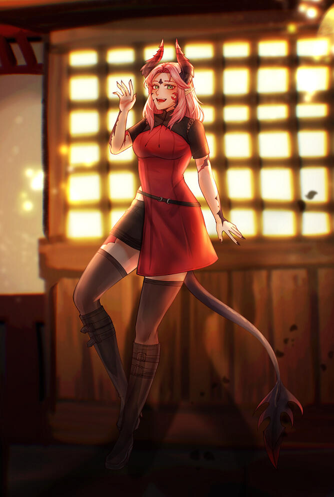 Leofix Nuselle was once a renowned scholar roaming the lands. His quench for knowledge was insatiable - his love for humanity unmatched. An Elezen of outstanding class and wisdom.Myelin Tumet. An Au Ra who knew naught but debauchery. Alternatively, a hero destined to save the very humanity Leofix so desperately idolized. Debauchery aside, surely she was a woman of high moral standing...Their meeting must have been fate - for their night of drunken shenanigans brought forth the Child of Bahamut. Incidentally, neither of them wanted said child. Thus, Lioleia was left to rot alone in the Azim Steppe.Fortunately life would not be so cruel and unforgiving. Altani Dalamiq discovered the newborn during one of her tribe's hunting expeditions and so graciously cared for her. As far as Lioleia was concerned, Altani was her mother.Their tribe long since abandoned the nomadic lifestyle and found permanent residence beside the river. Life in the Steppe was harsh and brutal, though Lioleia spent many a hot day playing in the river and many a night chatting alongside the fire, mingling and laughing with her family. A modest youth; as a child Lioleia was filled with wonder and curiosity. Listening to the tales of Dalamud and Bahamut with an innocent gleam in her eyes. The fire of passion and intrigue burned bright.As she grew older that flame only blazed hotter, as wicked as it may become.》 P R E - A R R《